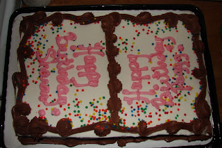 Since Peggy was having a birthday while they were visiting and Sharon had just had one a few weeks prior, Mom wanted me to pick up a cake for them since she had been unable to see them on their birthday. I decided that each one needed their own birthday wish so I had them divide the cake and put separate greetings on it.